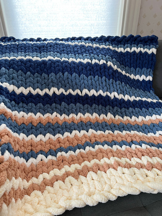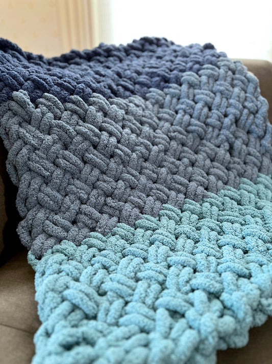 Lap/Kid Sized Cozy Blanket Blue Trio Criss Cross Pattern
