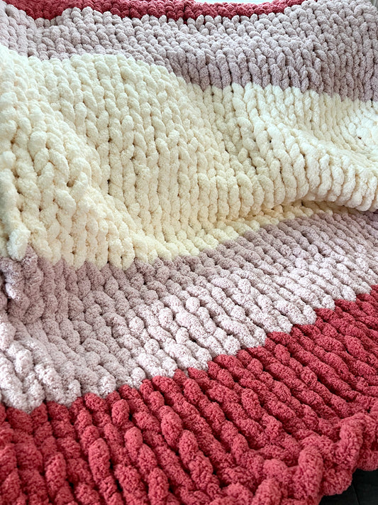Cozy Blanket Cream, Pink, and Terra Cotta Color Block Pattern