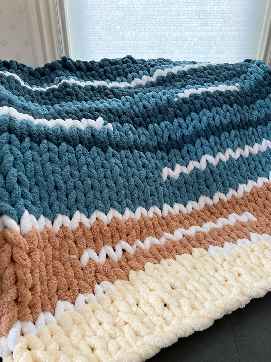 Lap Sized Cozy Blanket Ocean Teals Pattern